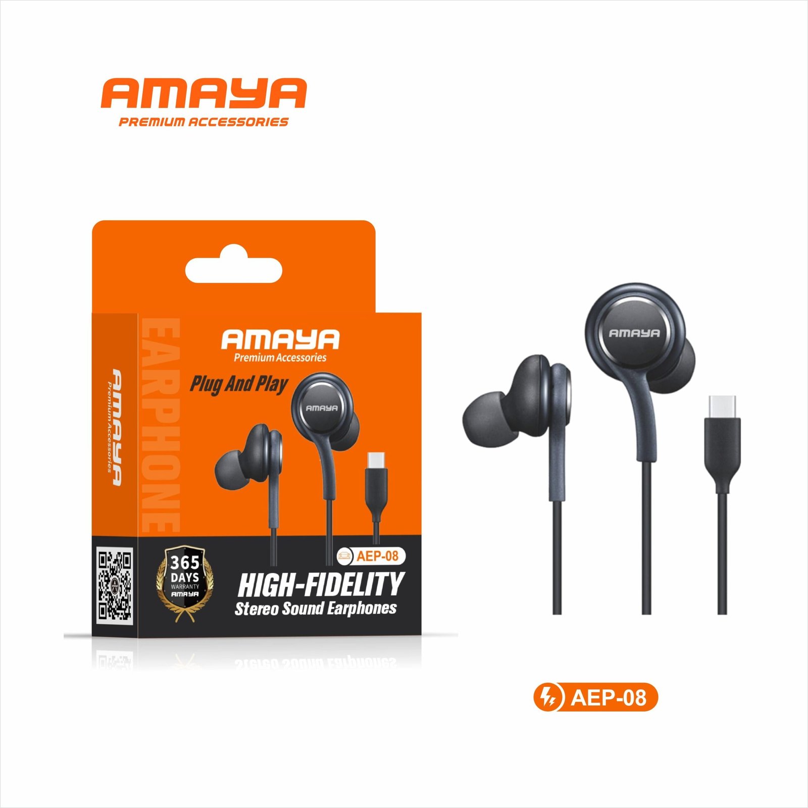 Experience high-quality audio with the Amaya AEP-08 Type-C Wired In-Ear Earphones. Designed for USB Type-C devices, these earphones deliver clear sound and a comfortable fit, making them ideal for daily use, whether you’re listening to music, taking calls, or watching videos.